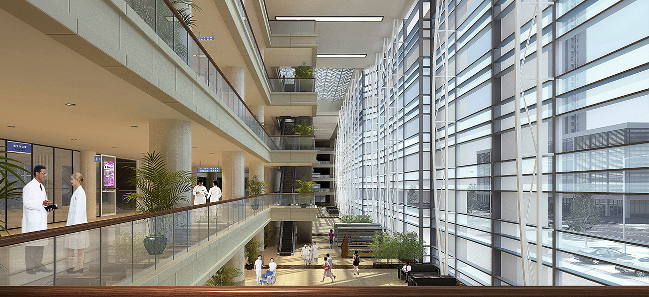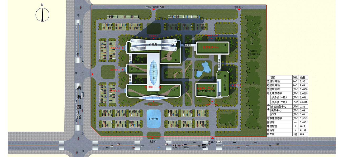 北海人民醫(yī)院設(shè)計將“以人為本,管理便捷;衛(wèi)生安全,運行高效;節(jié)能環(huán)保,綠色生態(tài)”的概念,貫穿整個設(shè)計過程,強調(diào)對環(huán)境的尊重,包括院區(qū)所在的大環(huán)境及院區(qū)內(nèi)部的小環(huán)境。通過深入的調(diào)查與分析,力爭使整個建筑群與自然環(huán)境和景觀和諧相處,病人在這樣的環(huán)境中能夠看到綠樹、藍天,呼吸到新鮮的空氣,激發(fā)其對生命的渴望和戰(zhàn)勝病痛的意志,從而達到積極配合治療的目的,同時工作人員常年工作于此,能身心舒暢,保持較高的工作效益。