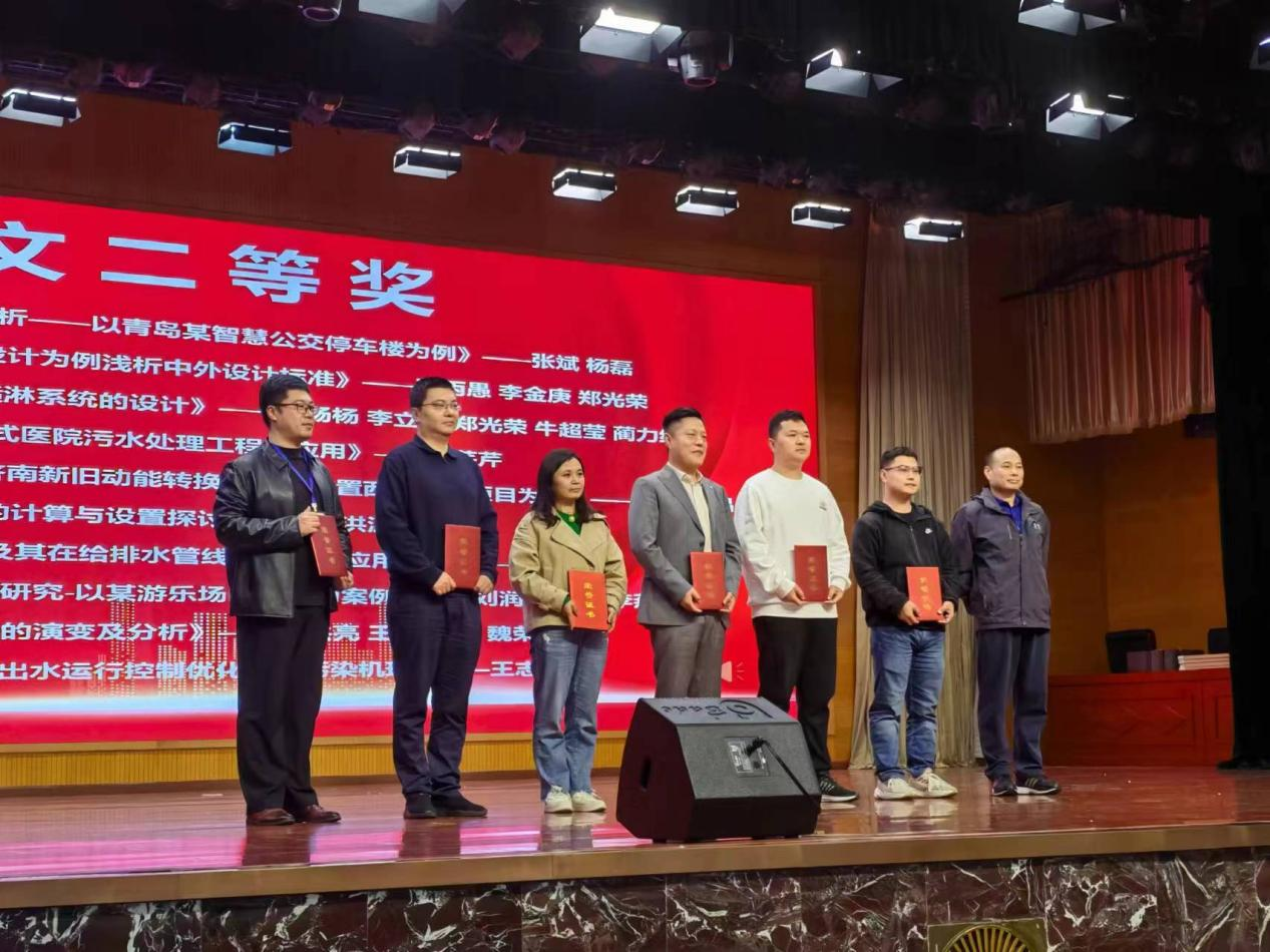 各位專業(yè)人員齊聚年會(huì),圍繞給排水行業(yè)發(fā)展,分享各自實(shí)踐經(jīng)驗(yàn),探尋行業(yè)高質(zhì)量發(fā)展的方法與途徑。我公司給排水設(shè)計(jì)人員榮獲多個(gè)獎(jiǎng)項(xiàng)。孟維娟榮獲“山東省十佳青年給排水工程師”稱號(hào)。楊陽(yáng)被聘為山東土木建筑學(xué)會(huì)建筑給排水專業(yè)委員會(huì)副主任委員、山東省給水排水技術(shù)情報(bào)網(wǎng)副理事長(zhǎng)、山東省國(guó)匯建筑與人文發(fā)展研究院建筑專業(yè)委員會(huì)專家、大匯建筑業(yè)平臺(tái)“專家智庫(kù)”行業(yè)專家。劉潤(rùn)君、楊陽(yáng)、李燕君撰寫論文《市政設(shè)施不完善場(chǎng)地的給排水處理研究-以某游樂場(chǎng)區(qū)地塊為案例》被評(píng)為 2024年山東省給水排水學(xué)術(shù)年會(huì)論文二等獎(jiǎng)。張帥、楊陽(yáng)、張晨晨撰寫的論文《高品質(zhì)住宅小區(qū)集中供應(yīng)熱水系統(tǒng)的設(shè)計(jì)案例》被評(píng)為 2024 年山東省給水排水學(xué)術(shù)年會(huì)論文三等獎(jiǎng)。楊陽(yáng)、崔節(jié)超、王志遠(yuǎn)撰寫的論文《住宅太陽(yáng)能光熱及光伏熱水系統(tǒng)的能效對(duì)比分析》被評(píng)為2024年山東省給水排水學(xué)術(shù)年會(huì)論文優(yōu)秀獎(jiǎng)。楊陽(yáng)撰寫的《青年設(shè)計(jì)師的社會(huì)責(zé)任與擔(dān)當(dāng)》被《建筑與人文》評(píng)為建筑人文類二等獎(jiǎng)。